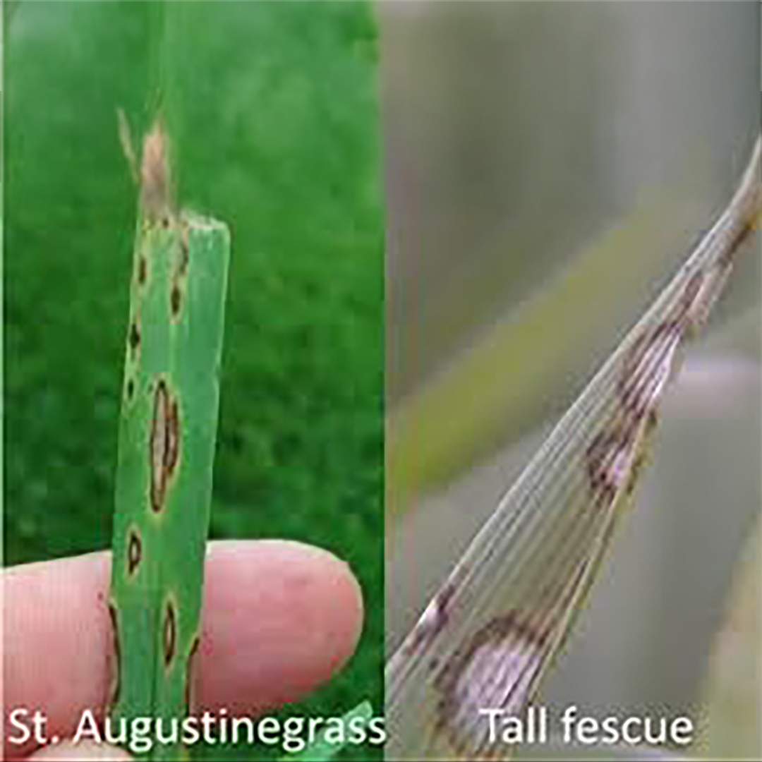 Gray leaf spot is a destructive fungal disease of turfgrass. It can rapidly damage and kill large areas of turf, particularly susceptible species such as Tall Fescue and St. Augustine grass.