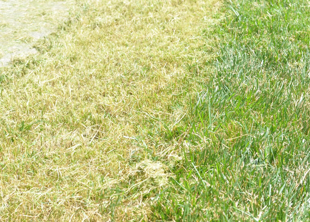 Tall Fescue is a “cool-season” grass, meaning it prefers heavy watering and cooler temperatures. When the rain stops and the heat cranks up, it quickly begins to struggle.