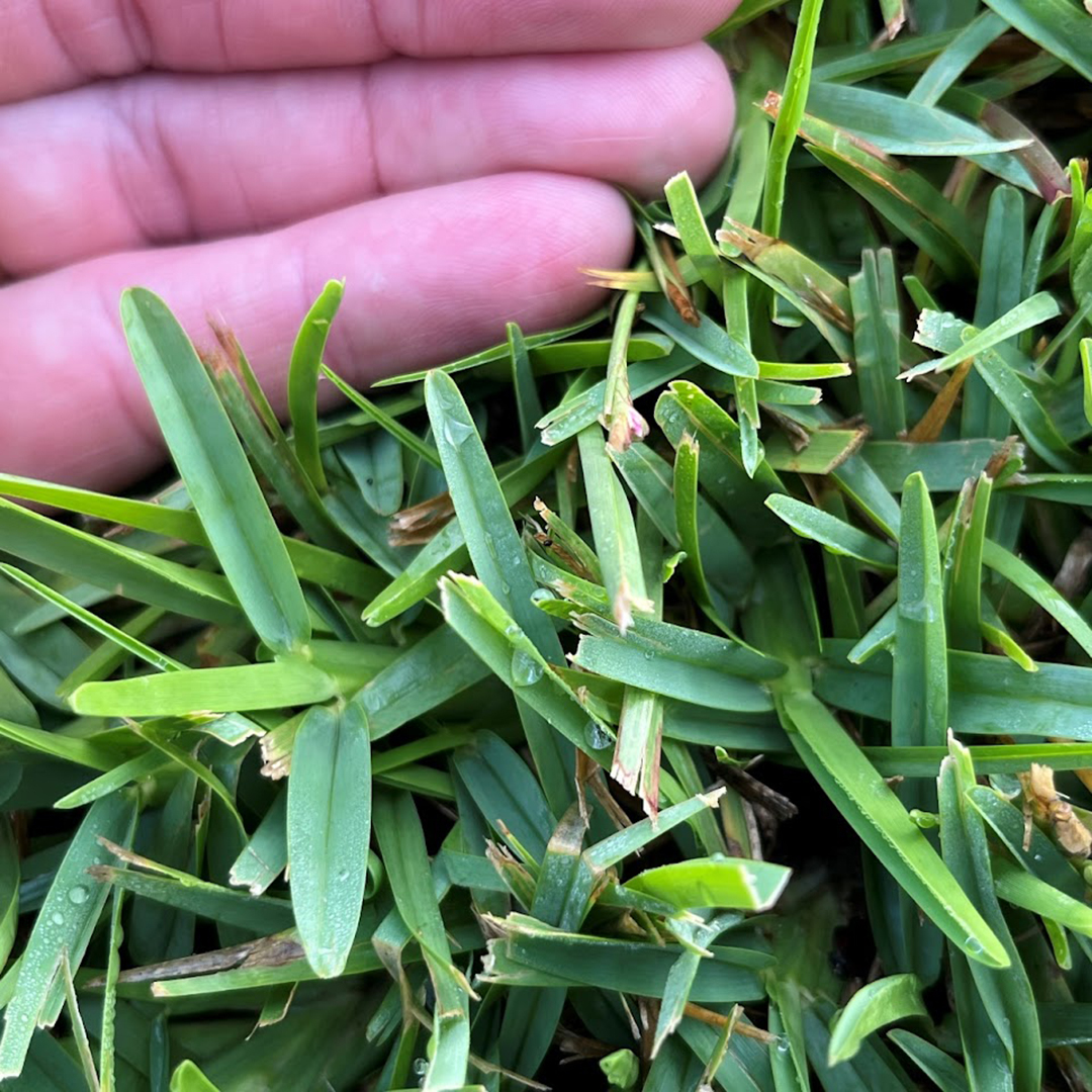 St. Augustine is an aggressively expanding turfgrass that tolerates full sun to moderate shade. It is the most delicate of these three grasses, with vulnerabilities to fungal disease (both winter & summer), winterkill, and several viruses that are active in the area. St. Augustine might be a good choice for shady lawns without an irrigation system. Owners of St. Augustine lawns should be prepared for occasional problems that may take time to correct.